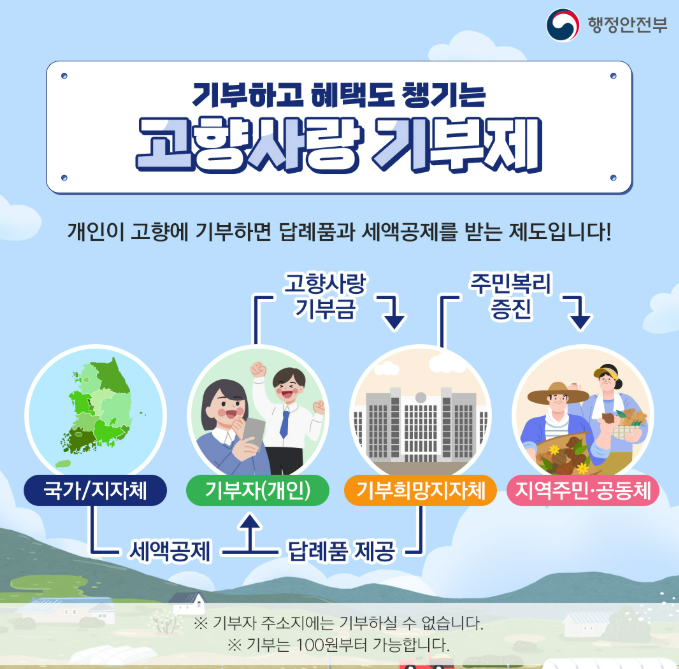 올해가 가기 전에 나도 기부를 통해 지역 경제를 살리는 작은 실천을 해보는 건 어떨까요? 내 기부가 지역 경제에 힘이 되고, 나 역시 실속 있는 혜택을 받을 수 있습니다. 이런 기회, 놓치지 말고 한 번 경험해보세요!